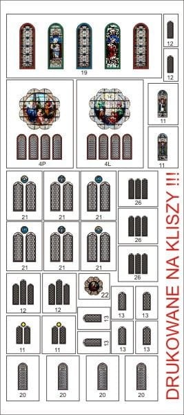 - 1 arkusz A4 przeźroczystej kliszy z kolorowymi witrażami okiennymi