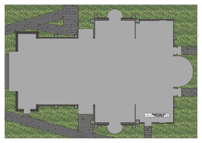 - 1 strona A3 z kolorowymi rzutami budowli
