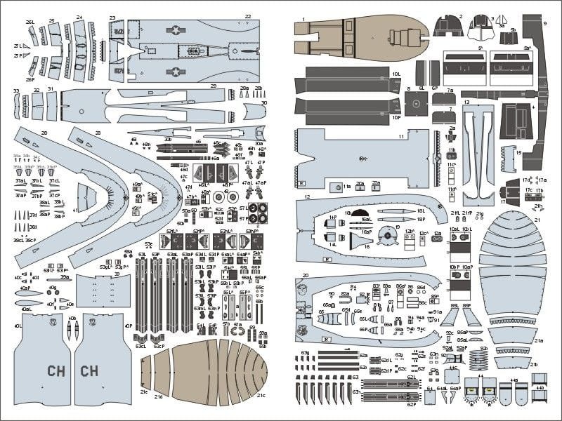 * niektóre elementy trudne do wycięcia lub sklejenia są zdublowane